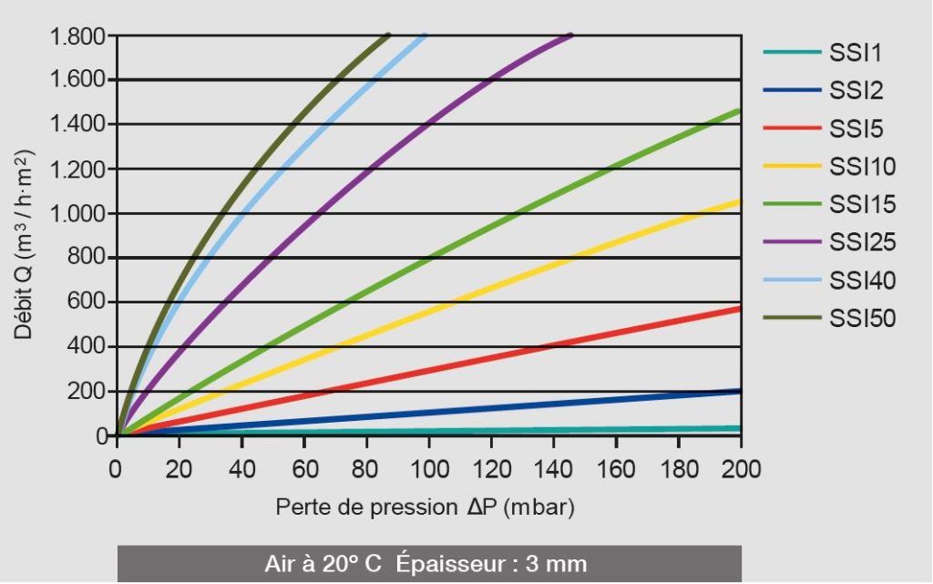 - Mesurée avec poromètre. Dispersion de la taille des pores, efficacité filtrante et perméabilité : ±25 %.