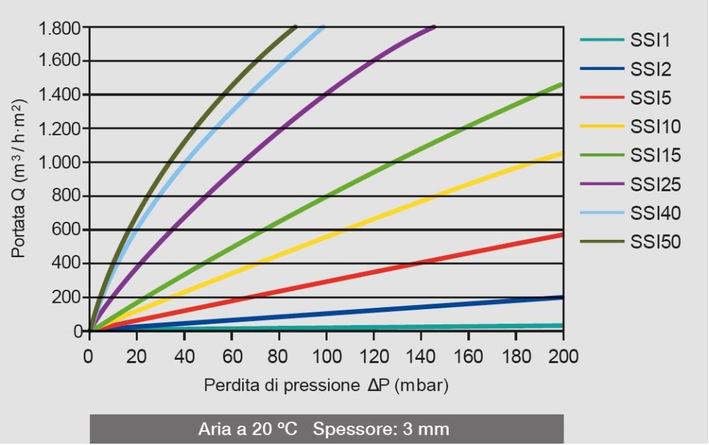 5. Misurata in aria con campione di spessore di 2 mm in conformità alla norma ISO 4022:2018 nelle seguenti condizioni: gradiente di pressione 250 s/bar, differenza di pressione massima 1,5 bar, portata massima 3,3 l/s. La permeabilità in acqua è notevolmente inferiore a quella in aria: per maggiori informazioni consultare il nostro Ufficio Tecnico su www.amespore.com.