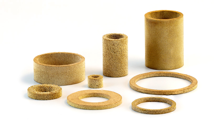 I anelli AmesPore® in bronzo sono prodotti mediante il riempimento di uno stampo con particelle sferiche in bronzo e successiva sinterizzazione del compattato.
